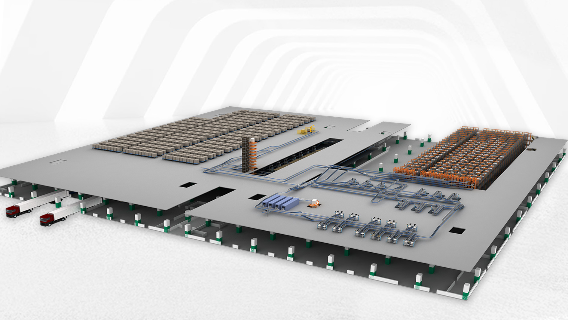 整体项目分两期建设,,,,一期面积6.7万平米,,,,知足2025年日均处置惩罚刚性需求;;;;;二期工程为未来生长提供扩展空间。。。一期项目共四层,,,,跨层提升机、螺旋提升机将所有楼层都毗连起来,,,,更是为3楼、4楼后期的全自动化刷新预留了接入口。。。