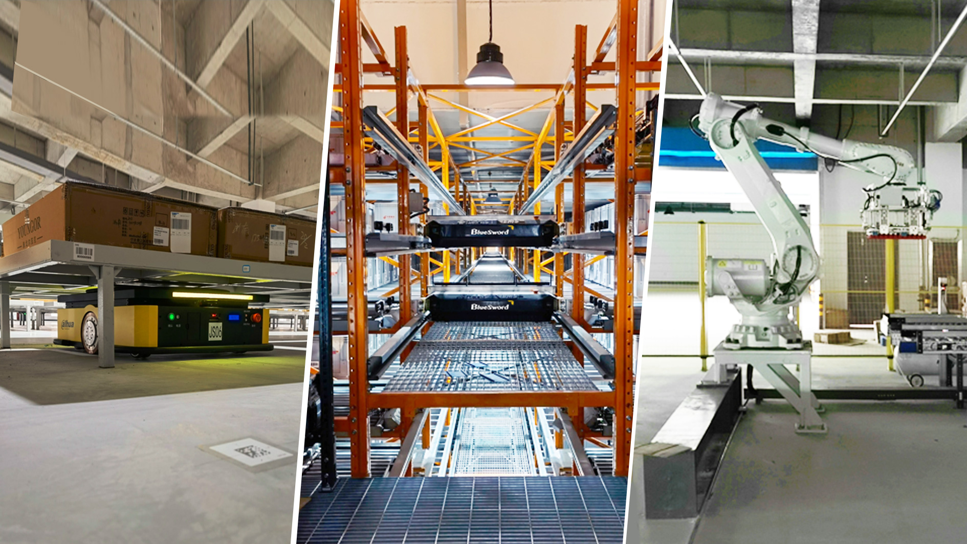 仓内可实现自动化仓储、自动化运送、自动化分拣,,,,涵盖了8868体育智能穿梭机械人、搬运机械人、拆码垛机械人等多款物流机械人。。。